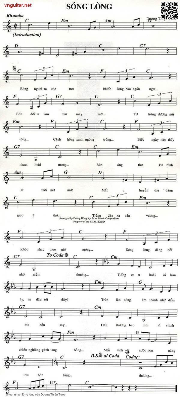 Transposition is the process of moving a song's melody and chords up or down in pitch by a constant interval. The direction of the transposition tool is indicated by a plus (+) sign for up and a minus (-) sign for down. Hover mouse over chords signs to see the chords chart of Sóng lòng song.