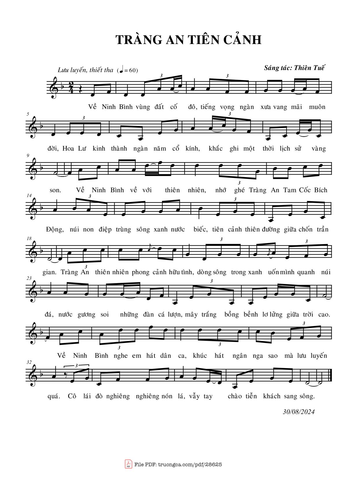 Thiên Tuế Về Ninh Bình vùng đất cố đô Tiếng vọng ngàn xưa vang mãi muôn đời [PDF] [Sheet] [Lyrics] [Mp4/Midi]