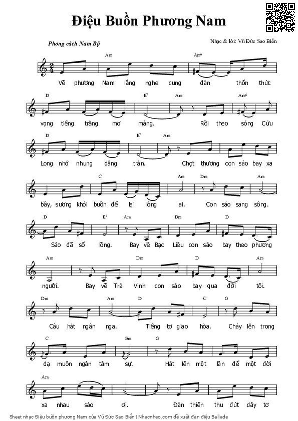 Vũ Đức Sao Biển Về phương Nam lắng nghe cung đàn Thổn thức vọng dưới trăng mơ màng [PDF] [Sheet] [Lyrics] [Mp4/Midi]