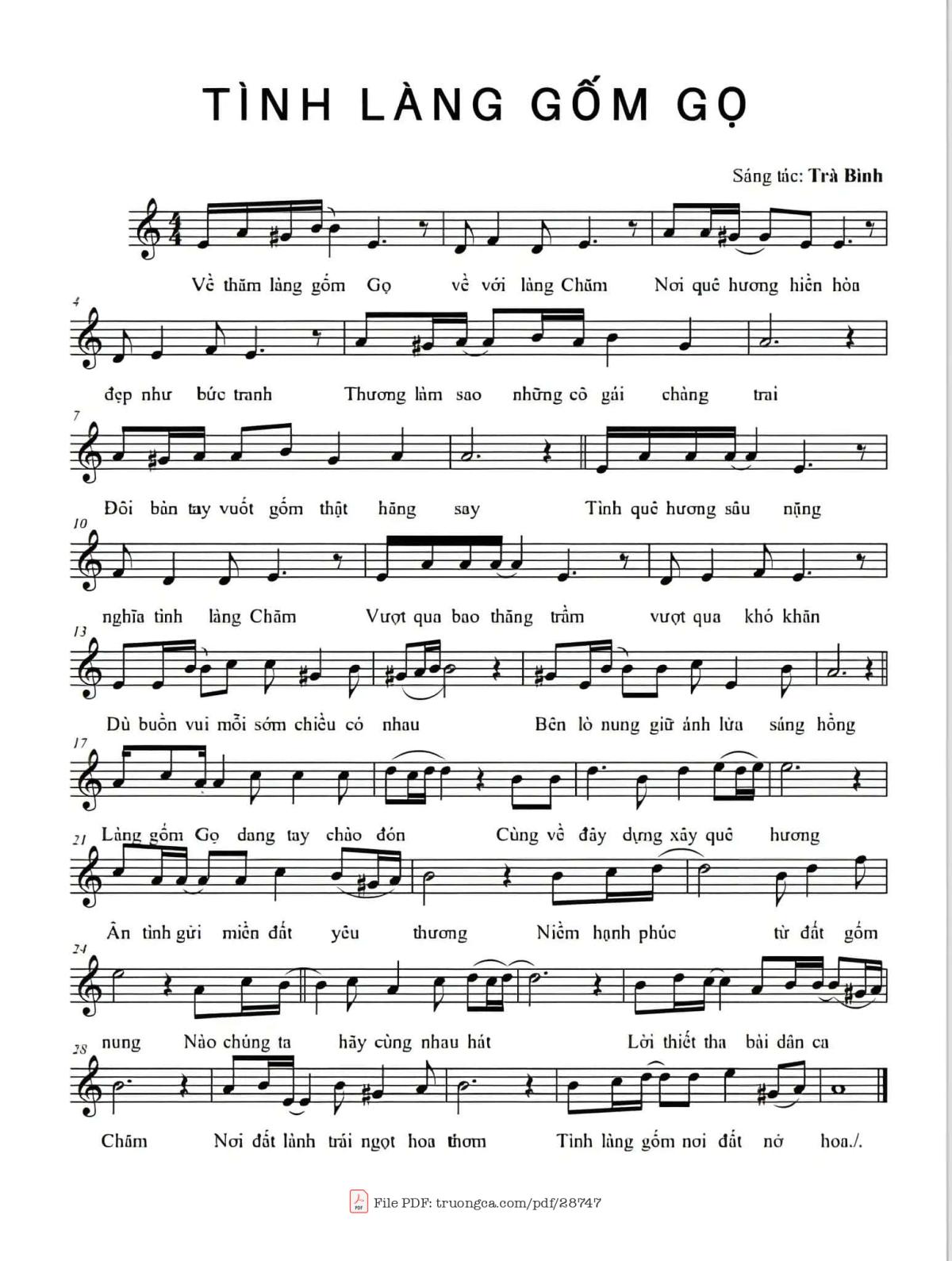 Trà Bình Về thăm làng gốm Gọ Về với làng Chăm [PDF] [Sheet] [Lyrics] [Mp4/Midi]