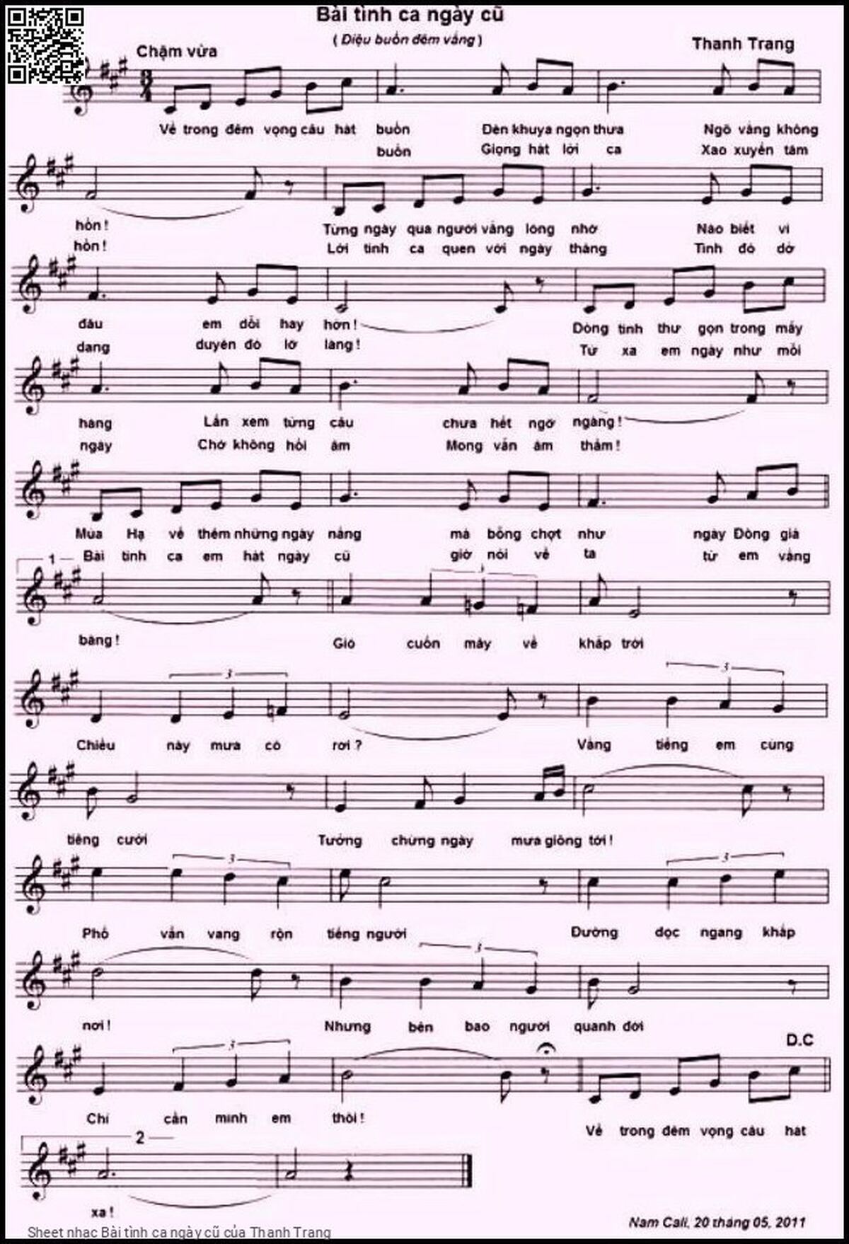 Thanh Trang Về trong đêm vọng câu hát buồn Đèn khuya ngọn thưa ngõ vắng không hồn [PDF] [Sheet] [Lyrics] [Mp4/Midi]