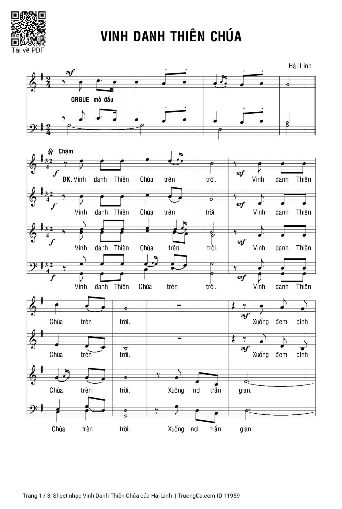 Hải Linh Vinh danh Thiên Chúa trên trời Vinh danh Thiên Chúa trên trời [PDF] [Sheet] [Lyrics] [Mp4/Midi]