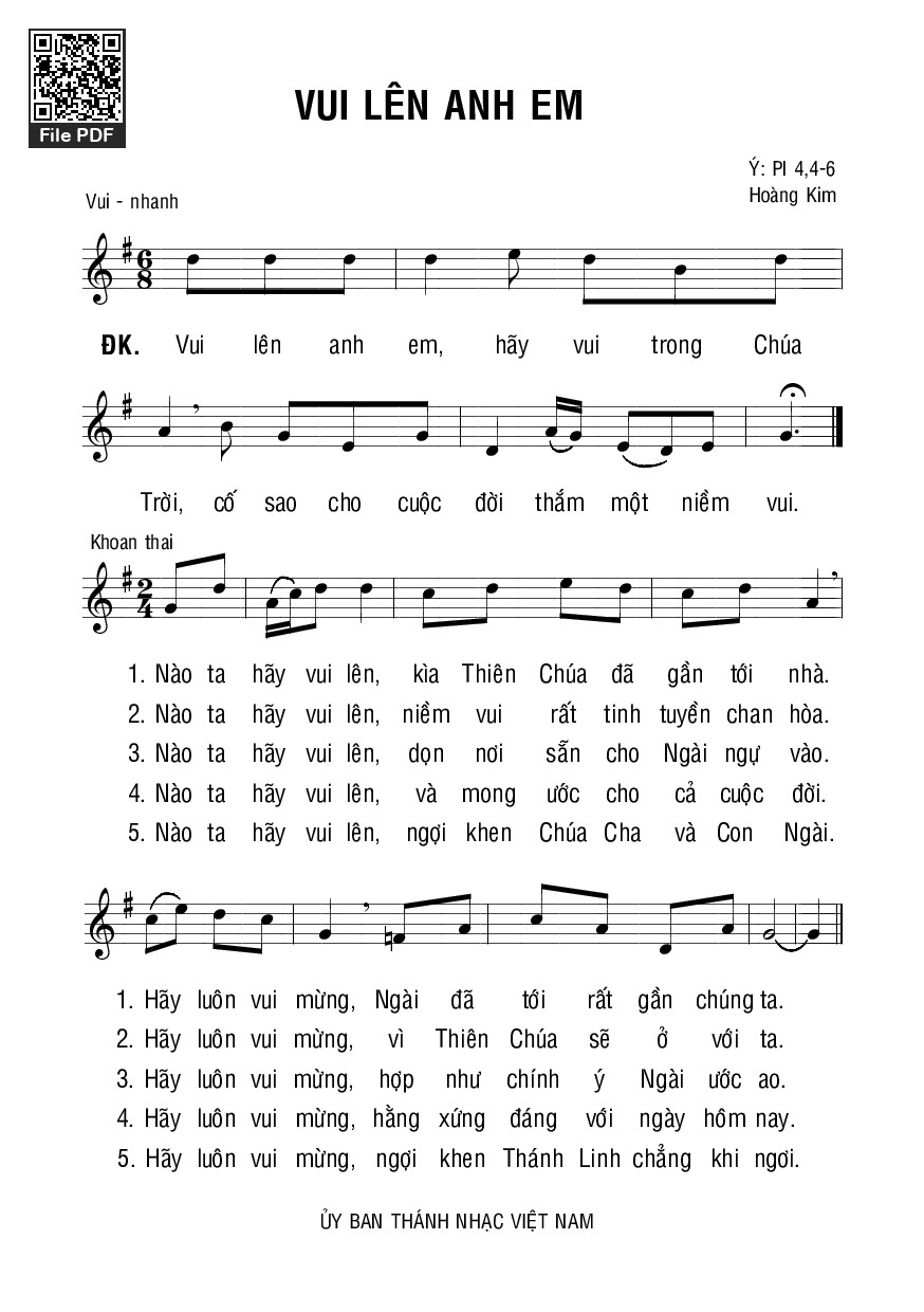 Điệp khúc. Vui lên anh em, hãy vui trong Chúa Trời, cố sao cho cuộc đời thắm một niềm vui.