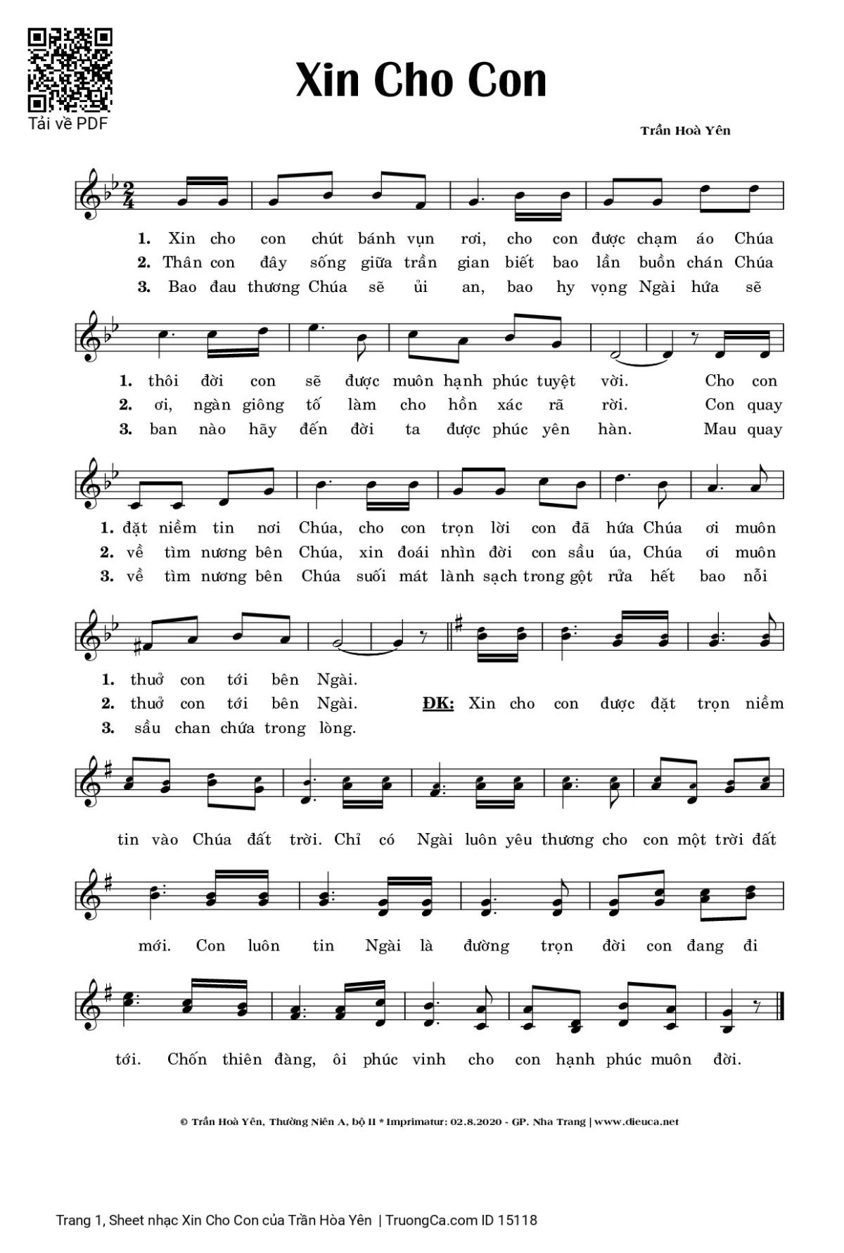 Transposition is the process of moving a song's melody and chords up or down in pitch by a constant interval. The direction of the transposition tool is indicated by a plus (+) sign for up and a minus (-) sign for down. Hover mouse over chords signs to see the chords chart of Xin Cho Con song.