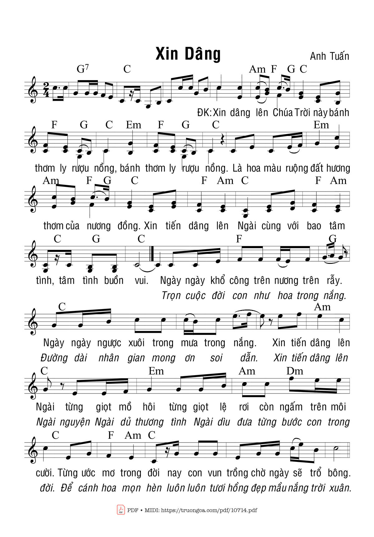 Anh Tuấn Xin dâng lên Chúa Trời này bánh thơm ly rượu nồng [PDF] [Sheet] [Lyrics] [Mp4/Midi]