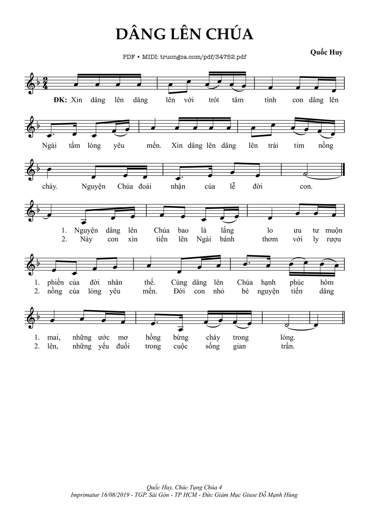 Điệp khúc. Xin dâng lên dâng lên với trót tâm tình con dâng lên Ngài tấm lòng yêu mến. Xin dâng lên dâng lên trái tim nồng cháy. Nguyện Chúa đoái nhận của lễ đời con.
