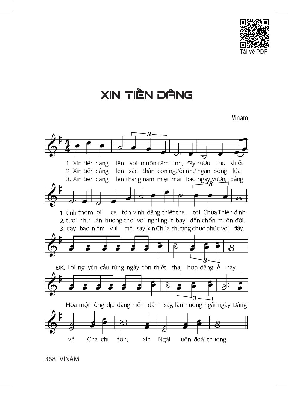 1) Xin tiến dâng lên với muôn tâm tình, đây rượu nho khiết tinh thơm lời ca tôn vinh dâng thiết tha tới Chúa Thiên Đình.
