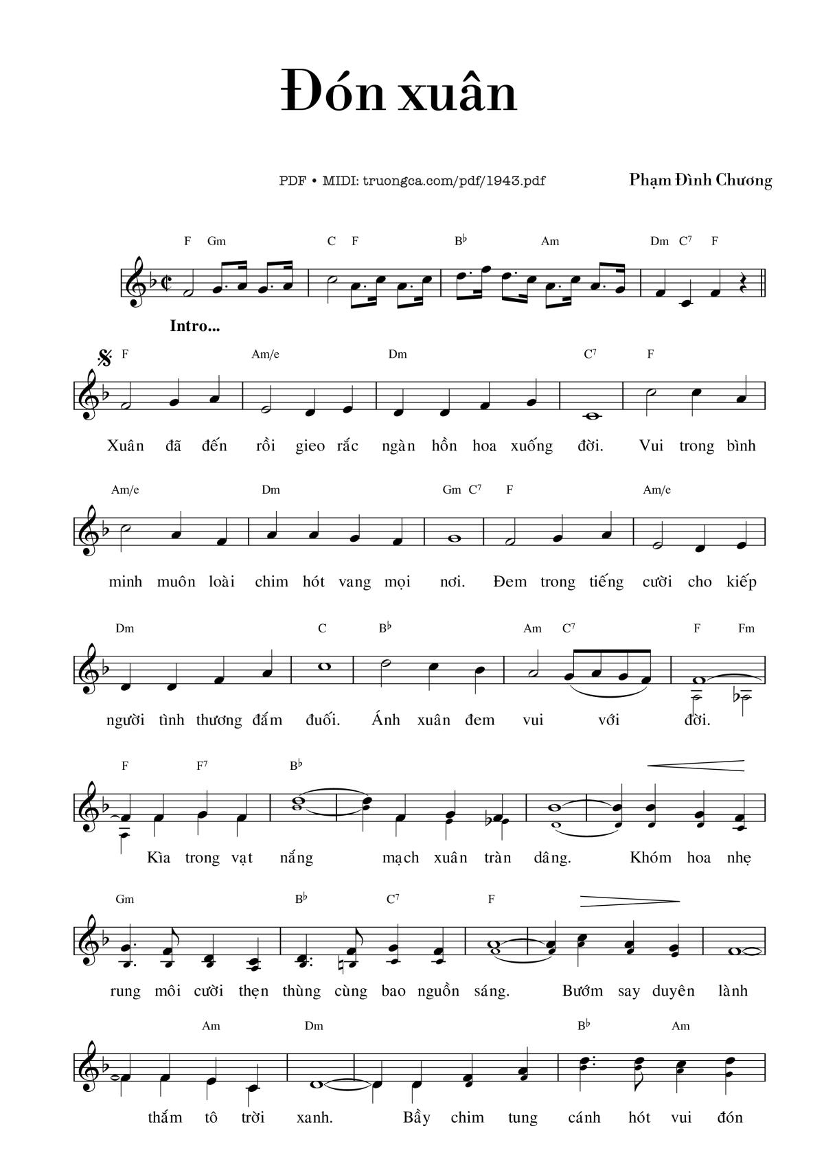 Phạm Đình Chương Xuân đã đến rồi gieo rắc ngàn hồn hoa xuống đời [PDF] [Sheet] [Lyrics] [Mp4/Midi]