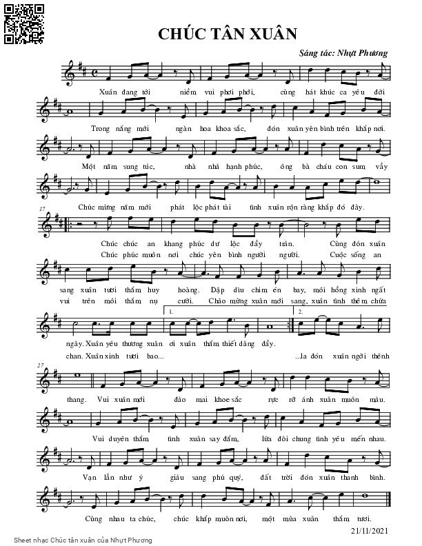 The Videos/audios Chúc tân xuân by Nhựt Phương were embed from Youtube, Musescore or the other 3rd links. Videos are subject to 3rd's copyright control and may be removed by YouTube's copyright rules and 3rd's policies or maybe included advertisements. If you cannot access to these songs, this mean that have been removed.