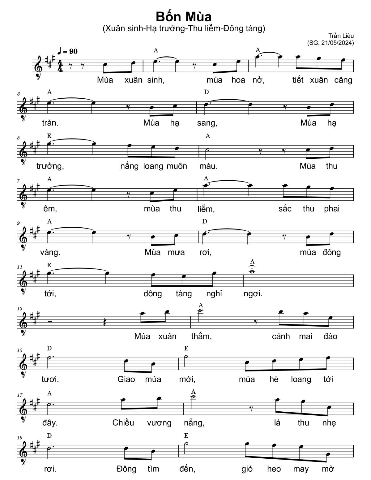 Trần Liêu Xuân sinh Hạ trưởng Thu liễm Đông tàng [PDF] [Sheet] [Lyrics] [Mp4/Midi]