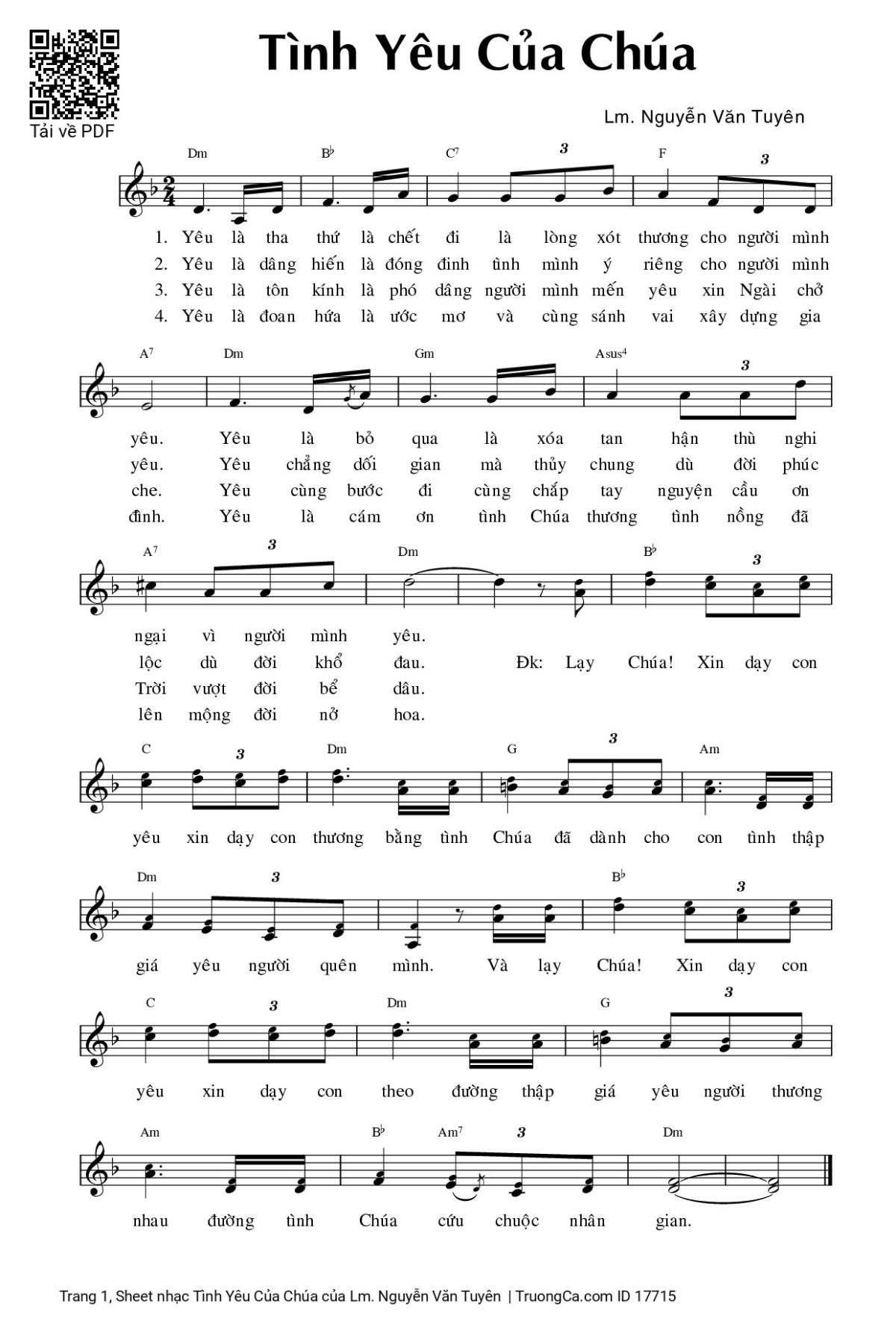 Transposition is the process of moving a song's melody and chords up or down in pitch by a constant interval. The direction of the transposition tool is indicated by a plus (+) sign for up and a minus (-) sign for down. Hover mouse over chords signs to see the chords chart of Tình Yêu Của Chúa song.