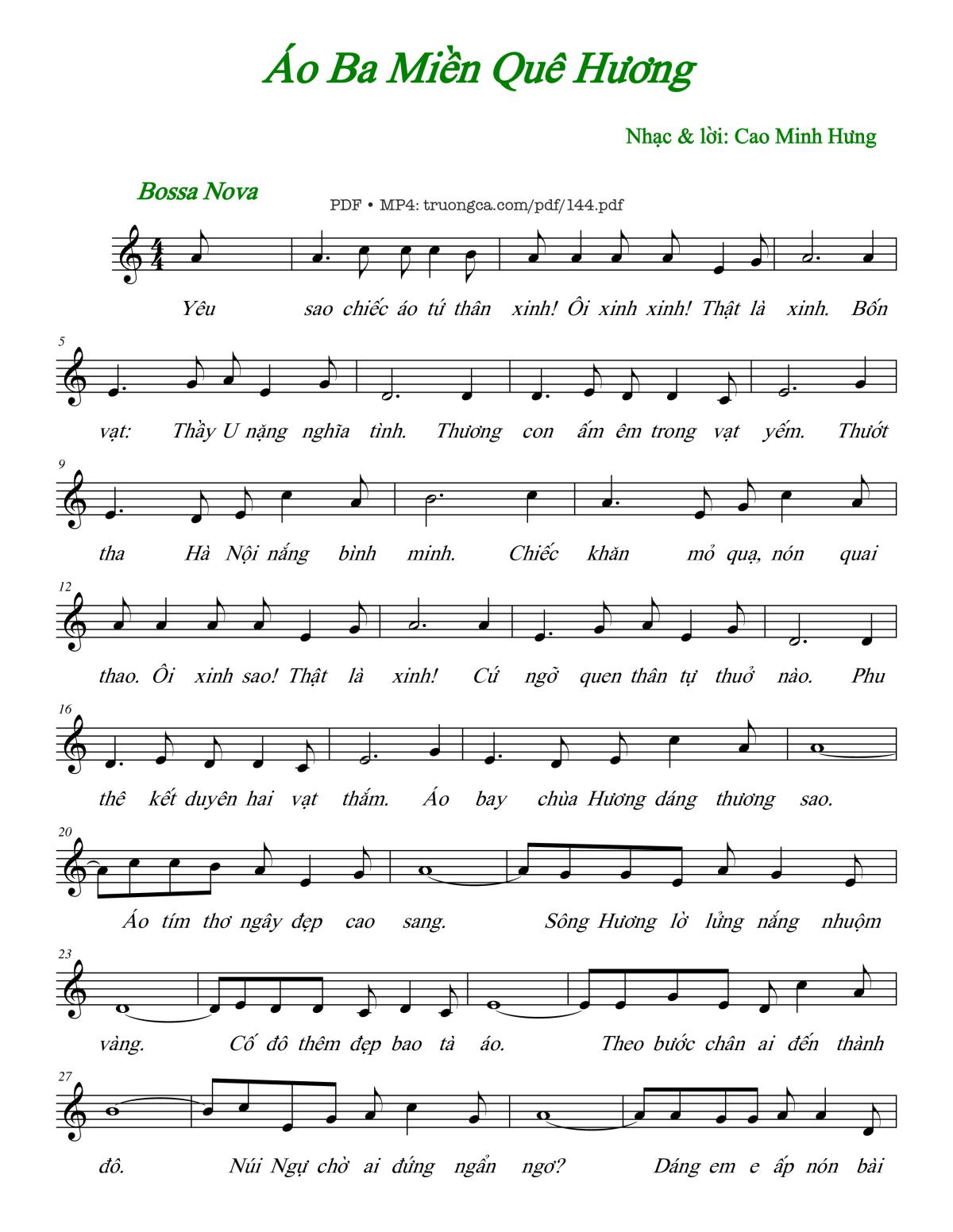 Cao Minh Hưng Yêu sao chiếc áo tứ thân xinh Ôi xinh xinh [PDF] [Sheet] [Lyrics] [Mp4/Midi]