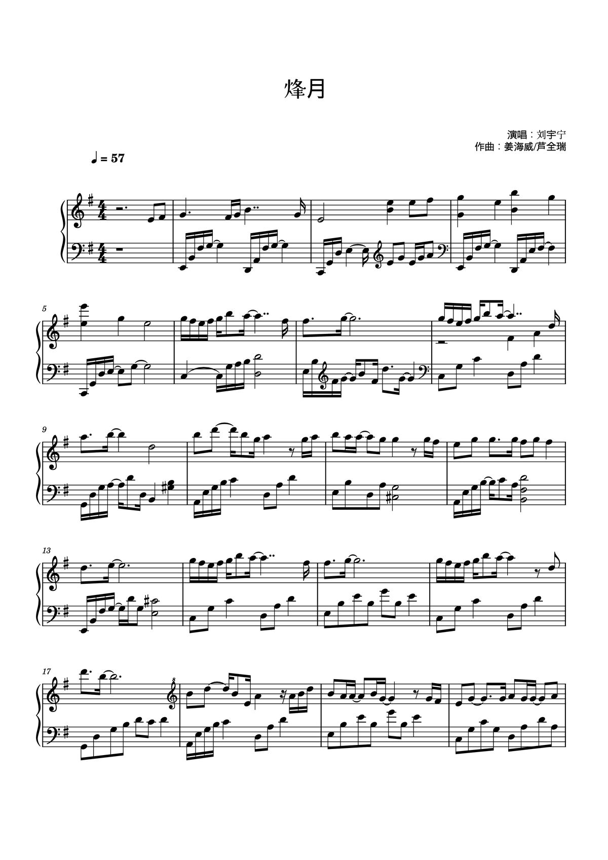 Download and print in PDF or MIDI free sheet music of 烽月 刘宇宁 - Jessy Chen for 烽月 刘宇宁 arranged by Jessy Chen for Piano (Solo)